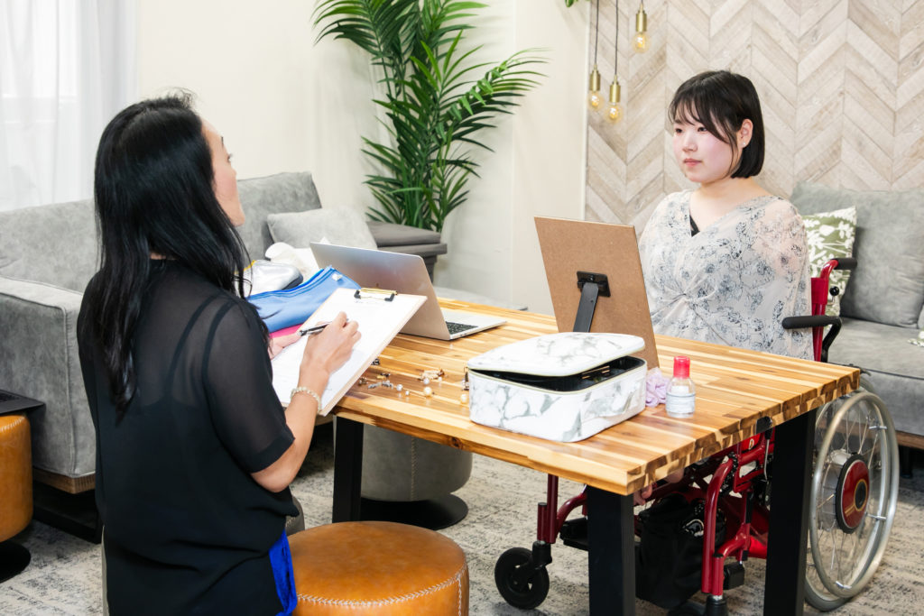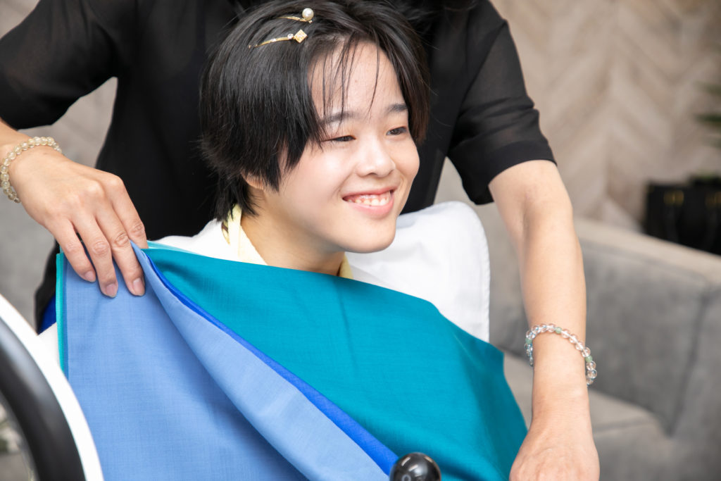 「Summerの色が似合うとわかったので、これからはブルーベースの明るい色を選んでいきたいです。今まではお母さんが服を買ってきていましたが、趣味が合わないし、私は似合うと思えなくて。それに、車いすだと試着室に入るのが大変でした。でも、今回似合う色や服をアドバイスしてもらって選ぶ基準ができたので、自分でネットショッピングしてみようと思います」(麗実さん)。